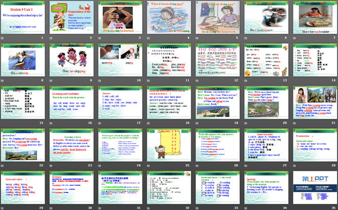 关键词:《We're enjoying the school trip a lot》教学课件,外研版七年级上册英语课件,七年级英语幻灯片课件下载,《We're enjoying the school trip a lot》PPT课件下载,.ppt格式