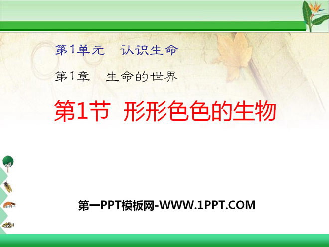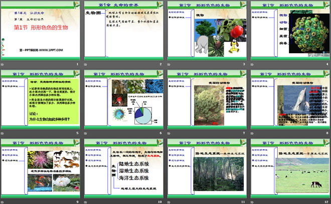 关键词:北师大版七年级上册生物PPT课件免费下载,形形色色的生物PPT下载,.PPT格式;