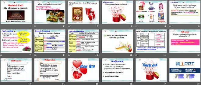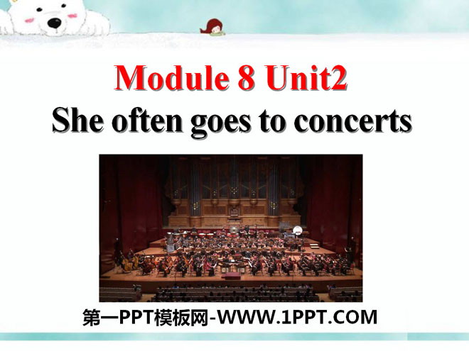 关键词:《She often goes to concerts》教学课件,外研版七年级上册英语课件,七年级英语幻灯片课件下载,《She often goes to concerts》PPT课件下载,.ppt格式