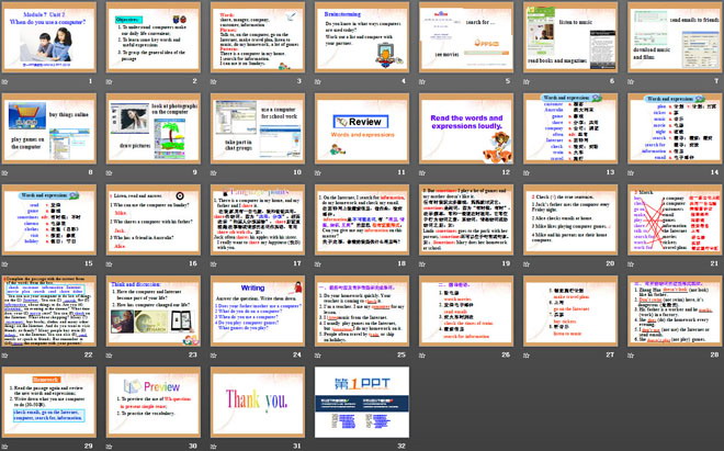 关键词:《When do you use a computer》教学课件,外研版七年级上册英语课件,七年级英语幻灯片课件下载,《When do you use a computer》PPT课件下载,.ppt格式
