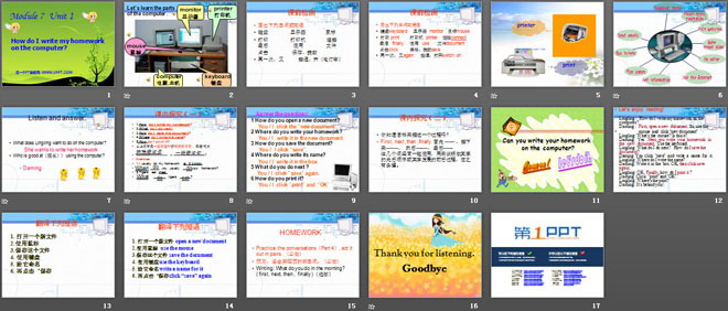 关键词:《How do I write my homework on the computer》教学课件,外研版七年级上册英语课件,七年级英语幻灯片课件下载,《How do I write my homework on the computer》PPT课件下载,.ppt格式