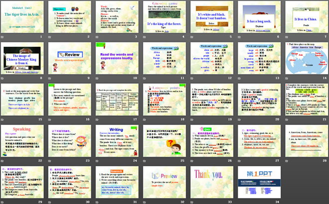 1. What animals live in ____ (亚洲)?