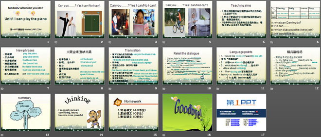 2.学生了解课本P8-9出现的短语和重点句型,做到复述课文;