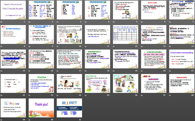 关键词:《I can play the piano》教学课件,外研版七年级下册英语课件,七年级英语幻灯片课件下载,《I can play the piano》PPT课件下载,.ppt格式