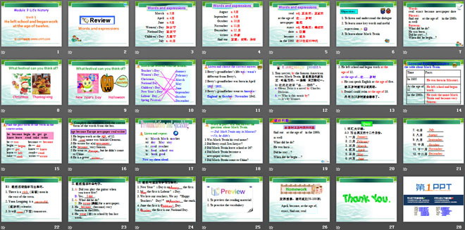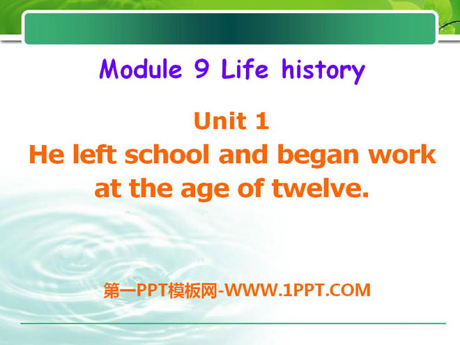 关键词:《He left school and began work at the age of twelve》教学课件,外研版七年级下册英语课件,七年级英语幻灯片课件下载,《He left school and began work at the age of twelve》PPT课件下载,.ppt格式