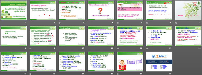 关键词:《Goldilocks hurried out of the house》教学课件,外研版七年级下册英语课件,七年级英语幻灯片课件下载,《Goldilocks hurried out of the house》PPT课件下载,.ppt格式