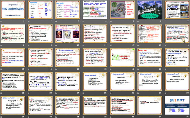 关键词:《I was born in Quincy》教学课件,外研版七年级下册英语课件,七年级英语幻灯片课件下载,《I was born in Quincy》PPT课件下载,.ppt格式