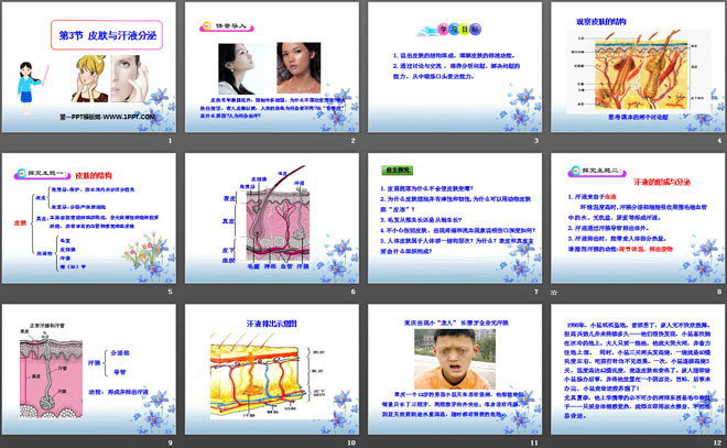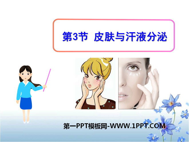 关键词:北师大版七年级下册生物PPT课件免费下载,皮肤与汗液分泌PPT下载,.PPT格式;