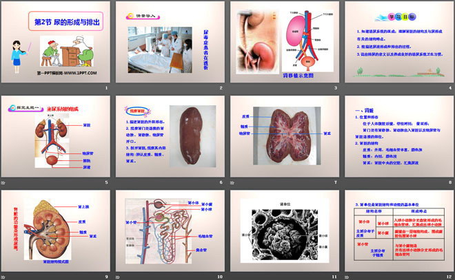 关键词:北师大版七年级下册生物PPT课件免费下载,尿的形成与排出PPT下载,.PPT格式;