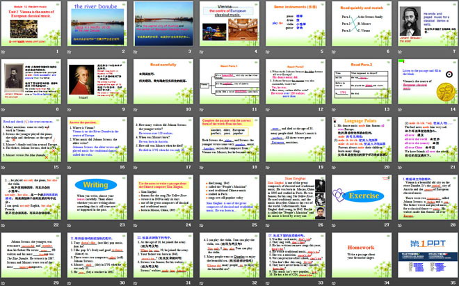 关键词:《Vienna is the centre of European classical music》教学课件,外研版七年级下册英语课件,七年级英语幻灯片课件下载,《Vienna is the centre of European classical music》PPT课件下载,.ppt格式
