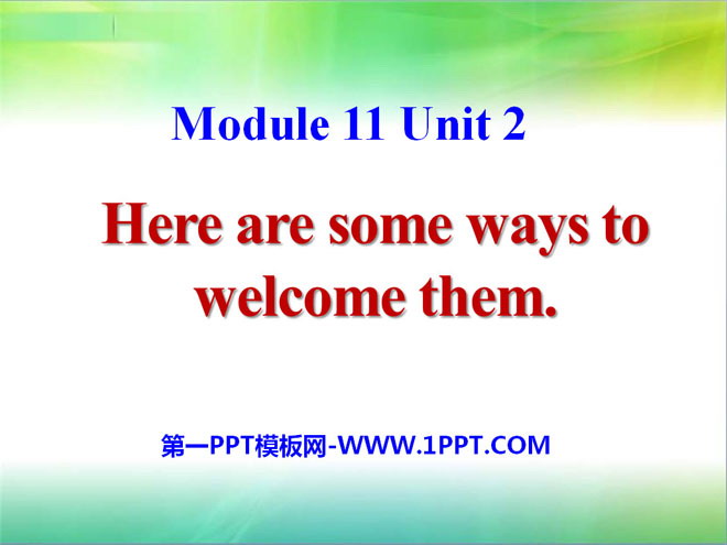 关键词:《Here are some ways to welcome them》教学课件,外研版七年级下册英语课件,七年级英语幻灯片课件下载,《Here are some ways to welcome them》PPT课件下载,.ppt格式