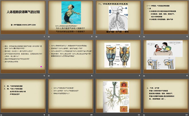 关键词:北师大版七年级下册生物PPT课件免费下载,人体细胞获得氧气的过程PPT下载,.PPT格式;