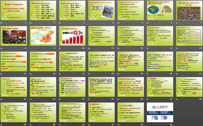 关键词:《The population of China is about 1.37 billion》教学课件,外研版八年级上册英语课件,八年级英语幻灯片课件下载,《The population of China is about 1.37 billion》PPT课件下载,.ppt格式