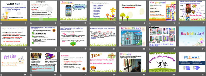 关键词:《I was trying to pick it up when it bite me again》教学课件,外研版八年级上册英语课件,八年级英语幻灯片课件下载,《I was trying to pick it up when it bite me again》PPT课件下载,.ppt格式
