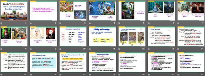 关键词:《Alice was sitting with her sister by the river》教学课件,外研版八年级上册英语课件,八年级英语幻灯片课件下载,《Alice was sitting with her sister by the river》PPT课件下载,.ppt格式