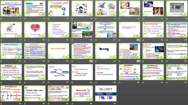 关键词:《The WWF is working hard to save them all》教学课件,外研版八年级上册英语课件,八年级英语幻灯片课件下载,《The WWF is working hard to save them all》PPT课件下载,.ppt格式