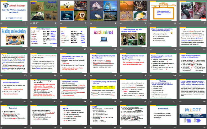 关键词:《The WWF is working hard to save them all》教学课件,外研版八年级上册英语课件,八年级英语幻灯片课件下载,《The WWF is working hard to save them all》PPT课件下载,.ppt格式