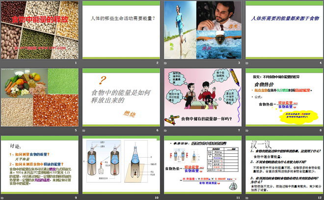 关键词:北师大版七年级下册生物PPT课件免费下载,食物中能量的释放PPT下载,.PPT格式;