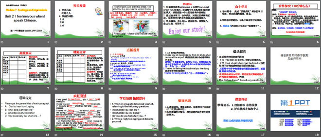 关键词:《I feel nervous when I speak Chinese》教学课件,外研版八年级下册英语课件,八年级英语幻灯片课件下载,《I feel nervous when I speak Chinese》PPT课件下载,.ppt格式