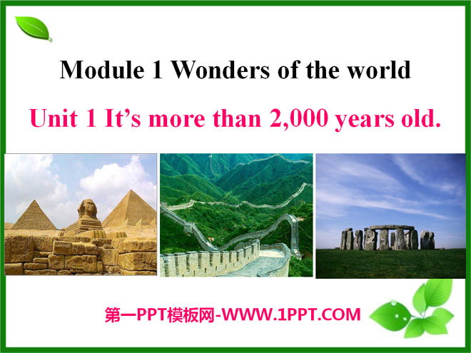 关键词:《It's more than 2,000 years old》教学课件,外研版九年级上册英语课件,九年级英语幻灯片课件下载,《It's more than 2,000 years old》PPT课件下载,.ppt格式