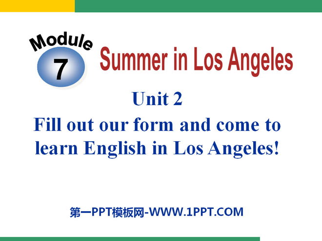 关键词:《Fill out our form and come to learn English in Los Angeles!》教学课件,外研版八年级下册英语课件,八年级英语幻灯片课件下载,《Fill out our form and come to learn English in Los Angeles!》PPT课件下载,.ppt格式