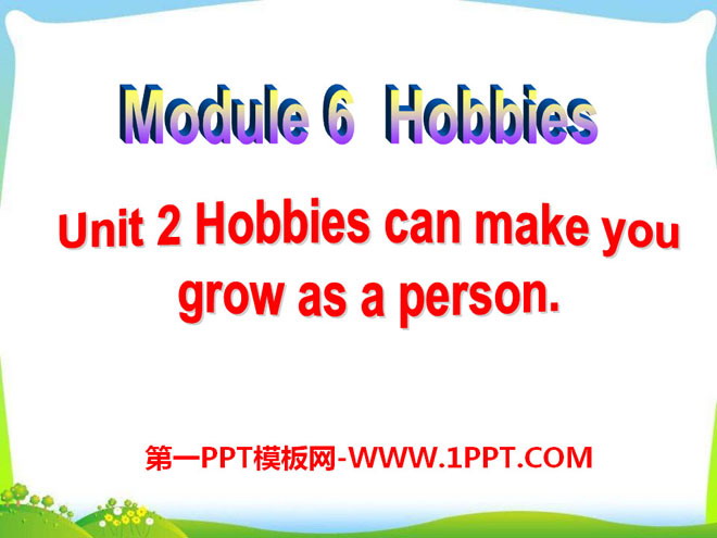 关键词:《Hobbies can make you grow as a person》教学课件,外研版八年级下册英语课件,八年级英语幻灯片课件下载,《Hobbies can make you grow as a person》PPT课件下载,.ppt格式