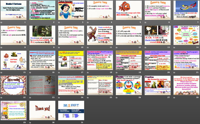 III. 情感态度目标:通过阅读卡通人物故事,感受到他们身上所蕴含的美好品质,同时了解中西方文化的不同。