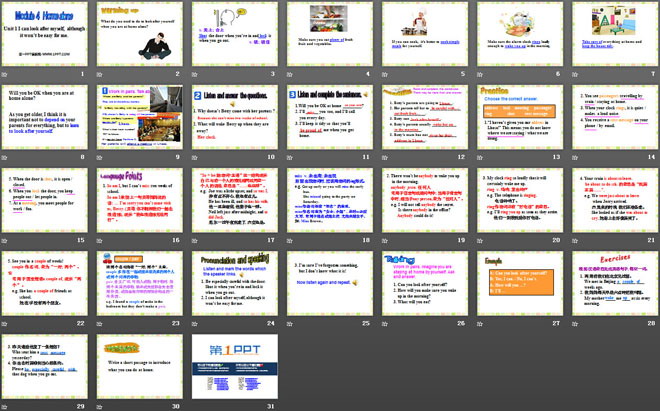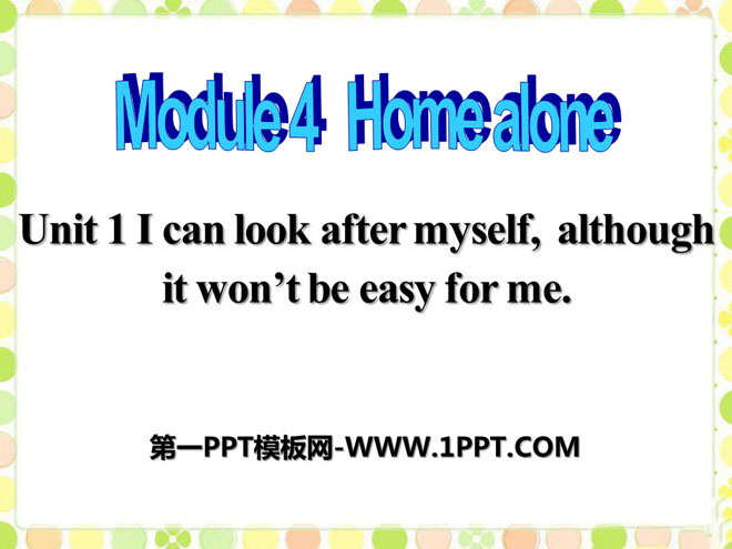 关键词:《I can look after myselfalthough it won't be easy for me》教学课件,外研版九年级上册英语课件,九年级英语幻灯片课件下载,《I can look after myselfalthough it won't be easy for me》PPT课件下载,.ppt格式
