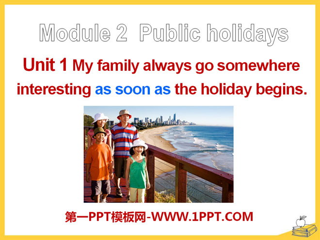 关键词:《My family always go somewhere interesting as soon as the holiday begins》教学课件,外研版九年级上册英语课件,九年级英语幻灯片课件下载,《My family always go somewhere interesting as soon as the holiday begins》PPT课件下载,.ppt格式