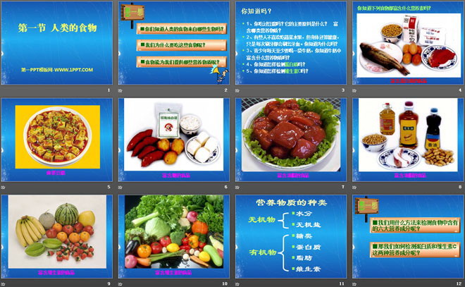关键词:北师大版七年级下册生物PPT课件免费下载,人类的食物PPT下载,.PPT格式;