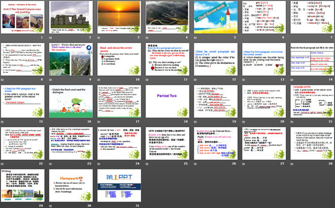 关键词:《The Grand Canyon was not just big》教学课件,外研版九年级上册英语课件,九年级英语幻灯片课件下载,《The Grand Canyon was not just big》PPT课件下载,.ppt格式