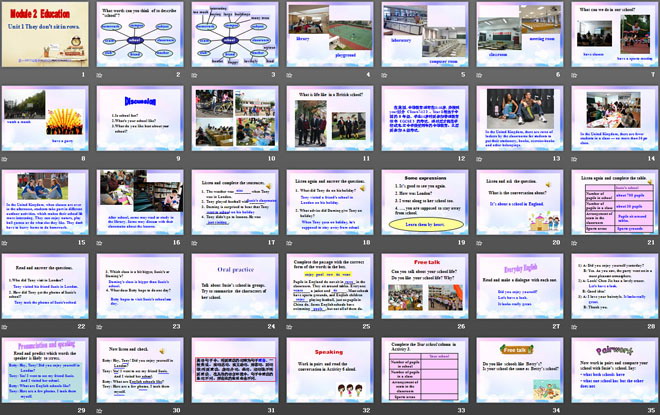 关键词:《They don't sit in rows》教学课件,外研版九年级下册英语课件,九年级英语幻灯片课件下载,《They don't sit in rows》PPT课件下载,.ppt格式