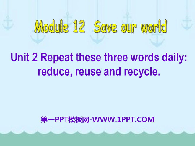 关键词:《Repeat these three words daily:reduce reuse and recycle》教学课件,外研版九年级上册英语课件,九年级英语幻灯片课件下载,《Repeat these three words daily:reduce reuse and recycle》PPT课件下载,.ppt格式