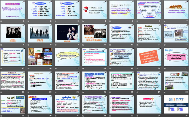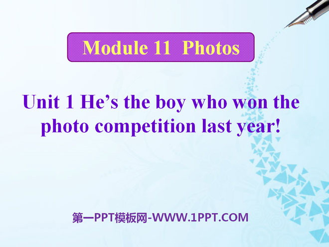 关键词:《He's the boy who won the photo competition last year!》教学课件,外研版九年级上册英语课件,九年级英语幻灯片课件下载,《He's the boy who won the photo competition last year!》PPT课件下载,.ppt格式
