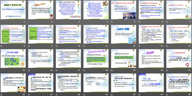 关键词:《Here's to our friendship》教学课件,外研版九年级下册英语课件,九年级英语幻灯片课件下载,《Here's to our friendship》PPT课件下载,.ppt格式