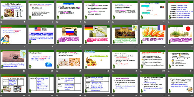 关键词:《Knives and forks are used for most Western food》教学课件,外研版九年级下册英语课件,九年级英语幻灯片课件下载,《Knives and forks are used for most Western food》PPT课件下载,.ppt格式