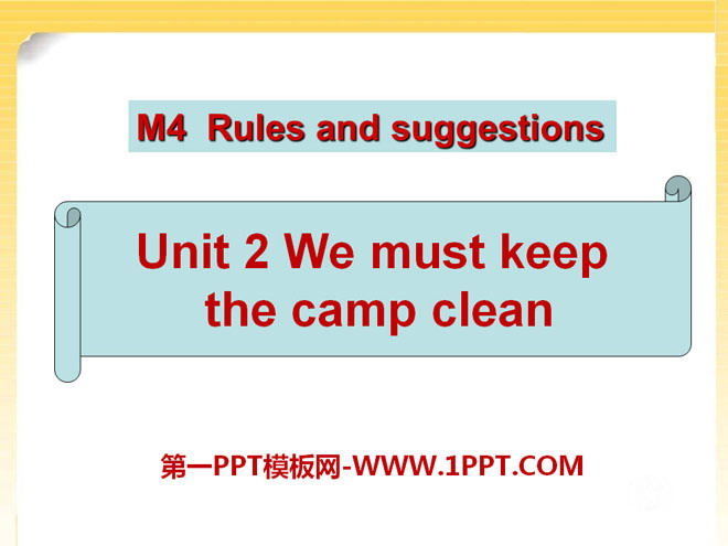 关键词:《We must keep the camp clean》教学课件,外研版九年级下册英语课件,九年级英语幻灯片课件下载,《We must keep the camp clean》PPT课件下载,.ppt格式