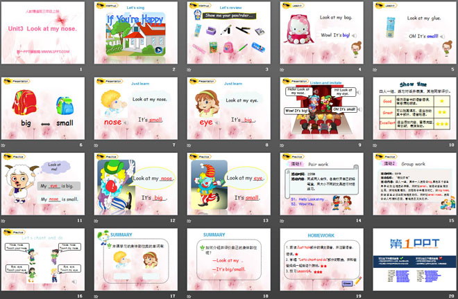 关键词:《Look at my nose》教学课件,人教精通版三年级上册英语PPT课件下载,三年级英语幻灯片课件下载,《Look at my nose》PPT课件下载,.PPT格式;