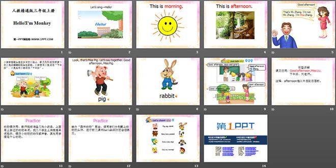 关键词:《Hello!I'm Monkey》教学课件,人教精通版三年级上册英语PPT课件下载,三年级英语幻灯片课件下载,《Hello!I'm Monkey》PPT课件下载,.PPT格式;