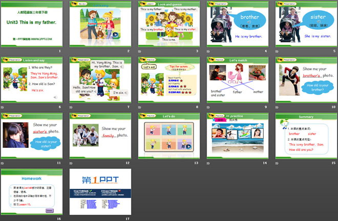 关键词:《This is my father》教学课件,人教精通版三年级下册英语PPT课件下载,三年级英语幻灯片课件下载,《This is my father》PPT课件下载,.PPT格式;