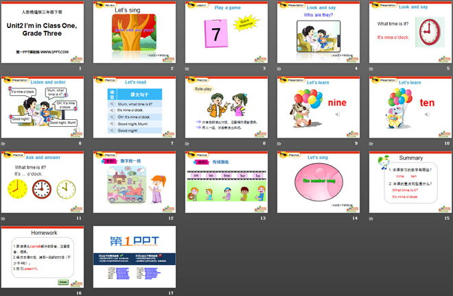 关键词:《I'm in Class One,Grade Three》教学课件,人教精通版三年级下册英语PPT课件下载,三年级英语幻灯片课件下载,《I'm in Class One,Grade Three》PPT课件下载,.PPT格式;