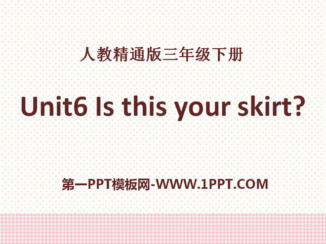 关键词:《Is this your skirt》教学课件,人教精通版三年级下册英语PPT课件下载,三年级英语幻灯片课件下载,《Is this your skirt》PPT课件下载,.PPT格式;