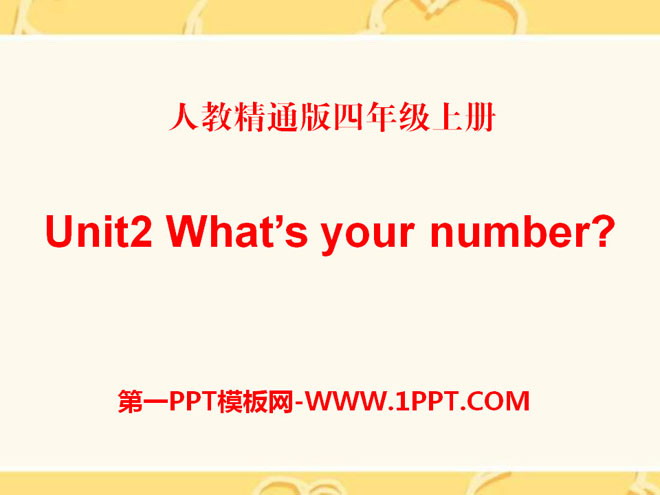 关键词:《What's your number?》教学课件,人教精通版四年级上册英语PPT课件下载,四年级英语幻灯片课件下载,《What's your number?》PPT课件下载,.PPT格式;