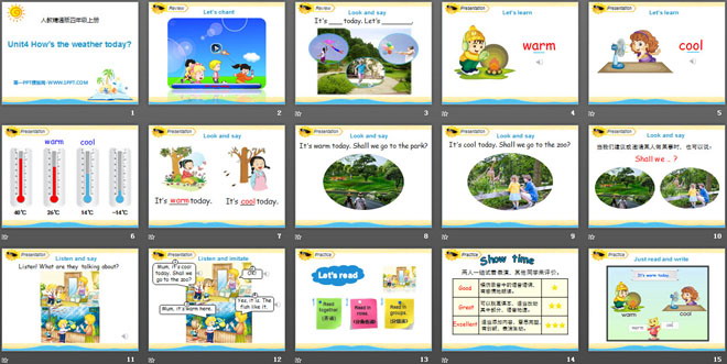关键词:《How's the weather today?》教学课件,人教精通版四年级上册英语PPT课件下载,四年级英语幻灯片课件下载,《How's the weather today?》PPT课件下载,.PPT格式;