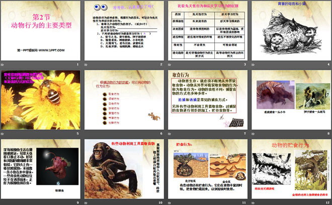 关键词:北师大版八年级上册生物PPT课件免费下载,动物行为的主要类型PPT下载,.PPT格式;