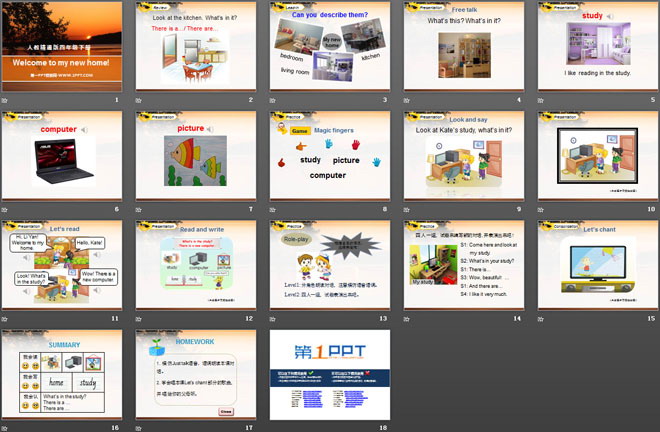 关键词:《Welcome to my new home》教学课件,人教精通版四年级下册英语PPT课件下载,四年级英语幻灯片课件下载,《Welcome to my new home》PPT课件下载,.PPT格式;