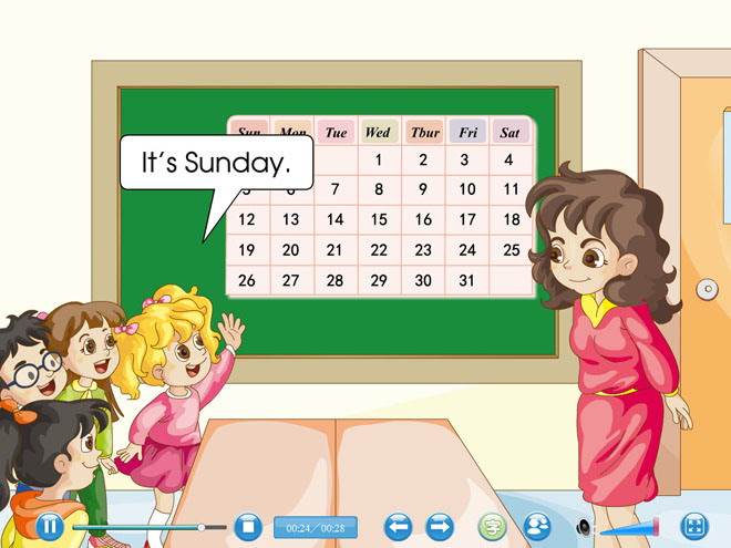 本课件属于人教精通版四年级下册英语unit4《There are seven days in a week》的教学素材Flash动画课件,内容生动形象,敬请下载!