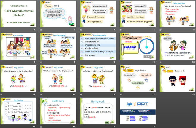 关键词:《What subject do you like best》教学课件,人教精通版四年级下册英语PPT课件下载,四年级英语幻灯片课件下载,《What subject do you like best》PPT课件下载,.PPT格式;