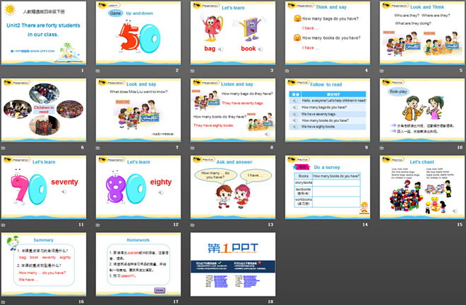 关键词:《There are forty students in our class》教学课件,人教精通版四年级下册英语PPT课件下载,四年级英语幻灯片课件下载,《There are forty students in our class》PPT课件下载,.PPT格式;
