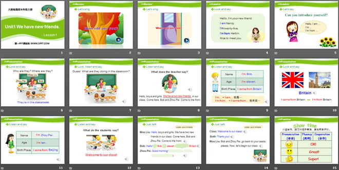 关键词:《We have new friends》教学课件,人教精通版五年级上册英语PPT课件下载,五年级英语幻灯片课件下载,《We have new friends》PPT课件下载,.PPT格式;